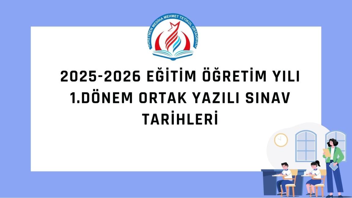 2025-2026 Eğitim Öğretim Yılı 1. Dönem Ortak Yazılı Sınav Tarihleri